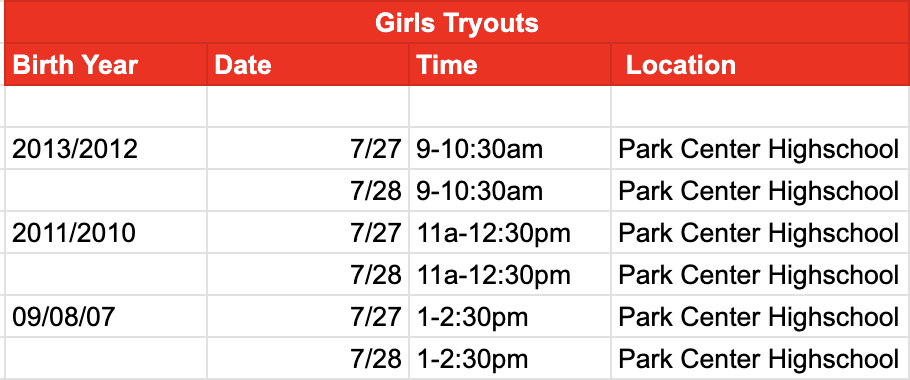 GIRLS SUPPLEMENTAL TRYOUTS